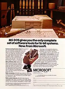 Microsoft omitted multi-user support from MS-DOS because Microsoft's Unix-based operating system, Xenix, was fully multi-user.[12] The company planned, over time, to improve MS-DOS so it would be almost indistinguishable from single-user Xenix, or XEDOS, which would also run on the Motorola 68000, Zilog Z8000, and the LSI-11; they would be upwardly compatible with Xenix, which Byte in 1983 described as "the multi-user MS-DOS of the future".[13][14] Microsoft advertised MS-DOS and Xenix together, listing the shared features of its "single-user OS" and "the multi-user, multi-tasking, UNIX-derived operating system", and promising easy porting between them.[15] After the breakup of the Bell System, however, AT&T Computer Systems started selling UNIX System V. Believing that it could not compete with AT&T in the Unix market, Microsoft abandoned Xenix, and in 1987 transferred ownership of Xenix to the Santa Cruz Operation (SCO).