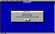 MS-DOS Editor, commonly just called edit or edit.com, is a TUI text editor that comes with MS-DOS 5.0 and later,[1] as well as all 32-bit x86 versions of Windows, until Windows 11. It supersedes edlin, the standard editor in earlier versions of MS-DOS. In MS-DOS, it was a stub for QBasic running in editor mode. Starting with Windows 95, MS-DOS Editor became a standalone program because QBasic didn't ship with Windows.