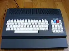 The original Mupid A320 was followed in 1983 by the MUPID II.[1] This version supported the CEPT Prestel standard, had a better keyboard, a 320 × 240 graphics mode, four voice sound, two DIN6 joystick connectors, a DIN8 tape interface, a DB25 modem, a DE9 serial connector and a DIN8 external disk drive connector.[5]