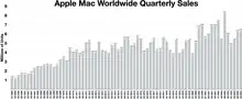 Apple's brand, which established a "heartfelt connection with consumers", is cited as one of the keys to the Mac's success.[166] After Steve Jobs's return to the company, he launched the Think different ad campaign, positioning the Mac as the best computer for "creative people who believe that one person can change the world".[167] The campaign featured black-and-white photographs of luminaries like Albert Einstein, Gandhi, and Martin Luther King Jr., with Jobs saying: "if they ever used a computer, it would have been a Mac".[168][169] The ad campaign was critically acclaimed and won several awards, including a Primetime Emmy.[170] In the 2000s, Apple continued to use successful marketing campaigns to promote the Mac line, including the Switch and Get a Mac campaigns.[171][172]