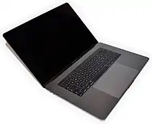 The Touch Bar MacBook Pro was released in October 2016. It was the thinnest MacBook Pro ever made, replaced all ports with four Thunderbolt 3 (USB-C) ports, gained a thinner "Butterfly" keyboard, and replaced function keys with the Touch Bar. The Touch Bar was criticized for making it harder to use the function keys by feel, as it offered no tactile feedback. Many users were also frustrated by the need to buy dongles, particularly professional users who relied on traditional USB-A devices, SD cards, and HDMI for video output.[96][97] A few months after its release, users reported a problem with stuck keys and letters being skipped or repeated. iFixit attributed this to the ingress of dust or food crumbs under the keys, jamming them. Since the Butterfly keyboard was riveted into the laptop's case, it could only be serviced at an Apple Store or authorized service center.[98][99][100] Apple settled a $50m class-action lawsuit over these keyboards in 2022.[101][102] These same models were afflicted by "flexgate": when users closed and opened the machine, they would risk progressively damaging the cable responsible for the display backlight, which was too short. The $6 cable was soldered to the screen, requiring a $700 repair.[103][104]