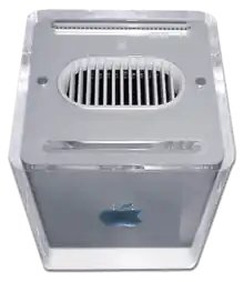 The design language of consumer Macs shifted again from colored plastics to white polycarbonate with the introduction of the 2001 Dual USB "Ice" iBook. To increase the iBook's durability, it eliminated doors and handles, and gained a more minimalistic exterior. Ive attempted to go beyond the quadrant with Power Mac G4 Cube, an innovation beyond the computer tower in a professional desktop far smaller than the Power Mac. The Cube failed in the market and was withdrawn from sale after one year. However, Ive considered it beneficial, because it helped Apple gain experience in complex machining and miniaturization.[54]