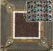 The most important change, from the point of view of automation, was the combination of the sense and inhibit wires, eliminating the need for a circuitous diagonal sense wire. With small changes in layout, this also allowed much tighter packing of the cores in each patch.[32][33]
