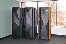 A mainframe computer, informally called a mainframe or big iron,[1] is a computer used primarily by large organizations for critical applications like bulk data processing for tasks such as censuses, industry and consumer statistics, enterprise resource planning, and large-scale transaction processing. A mainframe computer is large but not as large as a supercomputer and has more processing power than some other classes of computers, such as minicomputers, servers, workstations, and personal computers. Most large-scale computer-system architectures were established in the 1960s, but they continue to evolve. Mainframe computers are often used as servers.