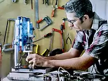 Smith was one of the founding members of the RepRap Research Foundation,[8] a non-profit group created to help advance early research in the area of open-source 3D printers.[9] Bre Pettis got inspired during an art residency in Vienna with Johannes Grenzfurthner/monochrom in 2007,[10] when he wanted to create a robot that could print shot glasses for the event Roboexotica and did research about the RepRap project at the Vienna hackerspace Metalab.[11] Shot glasses remained a theme throughout the history of MakerBot.[12]