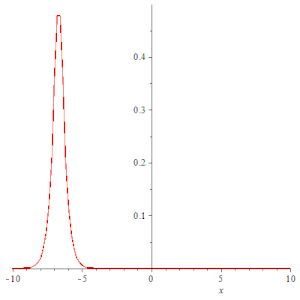 plots:-animate(subs(k = 0.5, f), x=-30..30, t=-10..10, numpoints=200, frames=50, color=red, thickness=3);