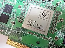 The Matrox Parhelia-512 is a graphics processing unit (GPU) released by Matrox in 2002. It has full support for DirectX 8.1 and incorporates several DirectX 9.0 features. At the time of its release, it was best known for its ability to drive three monitors ("Surround Gaming") and its Coral Reef tech demo.