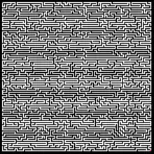 Other algorithms exist that require only enough memory to store one line of a 2D maze or one plane of a 3D maze. Eller's algorithm prevents loops by storing which cells in the current line are connected through cells in the previous lines, and never removes walls between any two cells already connected.[4] The Sidewinder algorithm starts with an open passage along the entire top row, and subsequent rows consist of shorter horizontal passages with one connection to the passage above. The Sidewinder algorithm is trivial to solve from the bottom up because it has no upward dead ends.[5] Given a starting width, both algorithms create perfect mazes of unlimited height.
