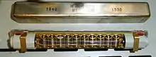 Versions of the harmonic telegraph were developed by Elisha Gray, Alexander Graham Bell, Ernest Mercadier[lower-alpha 2] and others. Its ability to act as a sound transducer to and from the electrical domain was to inspire the invention of the telephone.[10][11]