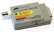 On original 10BASE5 (Thick) Ethernet equipment, the MAU was typically clamped to the Ethernet wire and multi-wire cable-connected to the computer via a DA-15 port, which was also what was present on the NIC. This AUI cable could be up to 50m/160ft long, but was typically much shorter. With later standards, thicknet vampire taps and N connectors gave way to BNC connectors (for thinnet coax cables) and 8P8C connectors (for twisted-pair cables). MAUs for these still connected to NICs via AUI cables, but soon the MAU ceased to be a separate adapter and was generally integrated into the network interface controller. Eventually the entire Ethernet controller was often integrated into a single integrated circuit ("chip") to reduce cost.