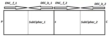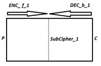 where ENC is the encryption function, DEC the decryption function defined as ENC−1 (inverse mapping) and k1 and k2 are two keys.