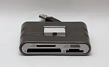A memory card reader is a device for accessing the data on a memory card such as a CompactFlash (CF), Secure Digital (SD) or MultiMediaCard (MMC). Most card readers also offer write capability, and together with the card, this can function as a pen drive.