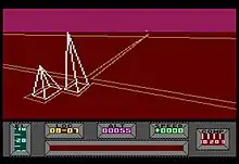 Mercenary: The Second City, released in 1986, is an expansion pack. Initially its major distinction is the new colour scheme, representing the other side of the planet. The ground is now red rather than the original green, and the sky is no longer blue. Instead, it is pink in the Amiga and Atari (8-bit and ST) versions,[3][4] dark blue on the Commodore 8-bit platforms (C64 and Plus/4)[5][6] and yellow on the ZX Spectrum.[7]