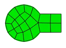 What is the precise definition of a mesh? There is not a universally-accepted mathematical description that applies in all contexts. However, some mathematical objects are clearly meshes: a simplicial complex is a mesh composed of simplices. Most polyhedral (e.g. cubical) meshes are conformal, meaning they have the cell structure of a CW complex, a generalization of a simplicial complex. A mesh need not be simplicial because an arbitrary subset of nodes of a cell is not necessarily a cell: e.g., three nodes of a quad does not define a cell. However, two cells intersect at cells: e.g. a quad does not have a node in its interior. The intersection of two cells may be several cells: e.g., two quads may share two edges. An intersection being more than one cell is sometimes forbidden and rarely desired; the goal of some mesh improvement techniques (e.g. pillowing) is to remove these configurations. In some contexts, a distinction is made between a topological mesh and a geometric mesh whose embedding satisfies certain quality criteria.