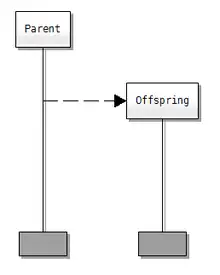 - Instance creation: horizontal dashed arrow to the newly created instance.