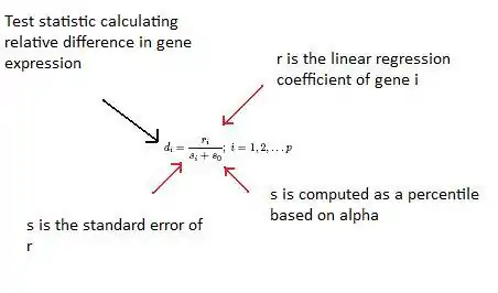 SAM calculates a test statistic for relative difference in gene expression based on permutation analysis of expression data and calculates a false discovery rate. The principal calculations of the program are illustrated below.[32][33][34]