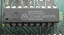 Microchip Technology was founded in 1987 when General Instrument spun off its microelectronics division as a wholly owned subsidiary.[5][6] The newly formed company was a supplier of programmable non-volatile memory, microcontrollers, digital signal processors, card chip on board, and consumer integrated circuits. An initial public offering (IPO) later in the year was canceled because of the October 1987 stock market crash.[5] Microchip Technology became an independent company in 1989 when it was acquired by a group of venture capitalists led by Sequoia Capital.[7] In the same year, Microchip Technology announced the release of small, inexpensive 8-bit reduced instruction set computing (RISC) microcontrollers for $2.40 apiece whereas most RISC microcontrollers were 32-bit devices selling for hundreds of dollars.[8]