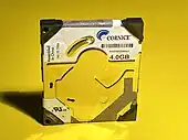 In September 1998, IBM announced the Microdrive in North America with a maximum capacity of 340 MB.[4] It was advertised as being about the size of a large coin, weighing less than an AA battery, and storing over 200 times more data than a floppy disk. The Microdrive was expected to be available by mid-1999.[5] At the time, CompactFlash cards had a maximum capacity of 128 MB.[6]