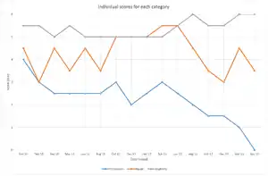 In October 2009, AV-TEST conducted a series of trials on the final build of the product in which it detected and caught 98.44 percent of 545,034 computer viruses, computer worms and software Trojan horses as well as 90.95 percent of 14,222 spyware and adware samples. It also detected and eliminated all 25 tested rootkits, generating no false-positives.[59] Between June 2010 to January 2013, AV-TEST tested Microsoft Security Essentials 14 times; in 11 out of 14 cases, MSE secured AV-TEST certification of outperforming AV industry average ratings.[60][lower-alpha 1] Microsoft Security Essentials 2.0 was tested and certified in March 2011. The product achieved a protection score of 2.5 out of 6, a repair score of 3.5 out of 6 and a usability score of 5.5 out of 6. Report details show that although version 2.0 was able to find all malware samples of the WildList (widespread malware), it was not able to stop all Internet-based attacks because it lacks personal firewall and anti-spam capabilities.[61] In an April 2012 test, version 2.1 achieved scores of 3.0, 5.5 and 5.0 for protection, repair and usability.[62] Version 4.0 for Windows 7 SP1 (x64) was tested in June 2012 and achieved scores of 2.5, 5.5 and 5.5 for protection, repair and usability.[63] In October 2012, the product lost its AV-TEST certification when Microsoft Security Essentials 4.1 achieved scores of 1.5, 3.5 and 5.5 for its protection, repair and usability.[64][65]