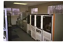 A minicomputer, or colloquially mini, is a type of smaller general-purpose computer developed in the mid-1960s[1][2] and sold at a much lower price than mainframe[3] and mid-size computers from IBM and its direct competitors. In a 1970 survey, The New York Times suggested a consensus definition of a minicomputer as a machine costing less than US$25,000 (equivalent to $196,000 in 2023[4]), with an input-output device such as a teleprinter and at least four thousand words of memory, that is capable of running programs in a higher level language, such as Fortran or BASIC.[5]