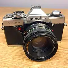 Minolta Co., Ltd. (ミノルタ, Minoruta) was a Japanese manufacturer of cameras, camera accessories, photocopiers, fax machines, and laser printers. Minolta Co., Ltd., which is also known simply as Minolta, was founded in Osaka, Japan, in 1928 as Nichi-Doku Shashinki Shōten (日独写真機商店, meaning Japanese-German camera shop). It made the first integrated autofocus 35 mm SLR camera system. In 1931, the company adopted its final name, an acronym for "Mechanism, Instruments, Optics, and Lenses by Tashima".[1]