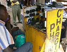 Mobile phones generally obtain power from rechargeable batteries. There are a variety of ways used to charge cell phones, including USB, portable batteries, mains power (using an AC adapter), cigarette lighters (using an adapter), or a dynamo. In 2009, the first wireless charger was released for consumer use.[9] Some manufacturers have been experimenting with alternative power sources, including solar cells.[10]