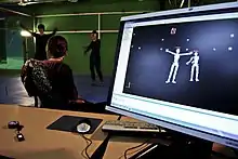 Motion capture (sometimes referred as mo-cap or mocap, for short) is the process of recording the movement of objects or people. It is used in military, entertainment, sports, medical applications, and for validation of computer vision[3] and robots.[4] In filmmaking and video game development, it refers to recording actions of human actors and using that information to animate digital character models in 2D or 3D computer animation.[5][6][7] When it includes face and fingers or captures subtle expressions, it is often referred to as performance capture.[8] In many fields, motion capture is sometimes called motion tracking, but in filmmaking and games, motion tracking usually refers more to match moving.