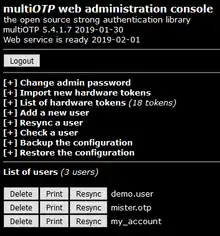 ![]() multiOTP open source web interface (5.4.1.7) | |