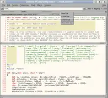 NEdit, the Nirvana editor, is a text editor and source code editor for the X Window System. It has an interface similar to text editors on Microsoft Windows and Macintosh, rather than to older UNIX editors like Emacs. It was initially developed by Mark Edel for Fermilab and released under a very restrictive licence, but today it is distributed under the less restrictive GPL-2.0-or-later (plus Motif clause[3]) and is developed as an independent open-source project by a team of developers. Nedit was also distributed with the IRIX operating system.
