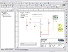 ![]() A screenshot of NI Multisim simulating a circuit, with schematic capture and virtual instrument tools visible. | |