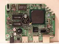 The device has two USB 2.0 ports for connecting hard disks and uses an ARM-compatible Intel XScale IXP420 CPU. In models manufactured prior to around April 2006, Linksys had underclocked the processor to 133 MHz, though a simple hardware modification to remove this restriction is possible. Later models (circa. May 2006) are clocked at the rated speed of 266 MHz. The device includes 32 MB of SDRAM, and 8 MB of flash memory. It also has a 100 Mbit/s Ethernet network connection. The NSLU2 is fanless, making it completely silent.