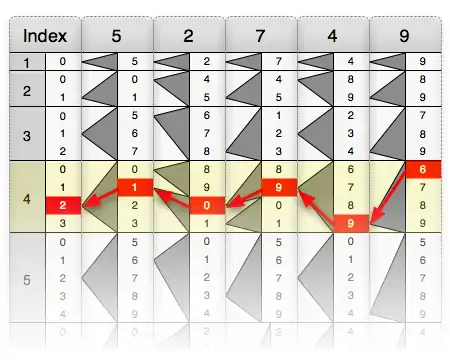 Division is performed in a similar fashion. To divide 46785399 by 96431, the bars for the divisor (96431) are placed on the board, as shown in the graphic below. Using the abacus, all the products of the divisor from 1 to 9 are found by reading the displayed numbers. Note that the dividend has eight digits, whereas the partial products (save for the first one) all have six. So the final two digits of 46785399, namely the '99', are temporarily ignored, leaving the number 467853. Then, the greatest partial product that is less than the truncated dividend is found. In this case, 385724. Two things must be marked down, as seen in the diagram: since 385724 is in the '4' row of the abacus, a '4' is marked down as the left-most digit of the quotient; the partial product, left-aligned, under the original dividend, is also written. The two terms are subtracted, which leaves 8212999. The same steps are repeated: the number is truncated to six digits, the partial product immediately less than the truncated number is chosen, the row number is written as the next digit of the quotient, and the partial product is subtracted from the difference found in the first repetition. The process is shown in the diagram. The cycle is repeated until the result of subtraction is less than the divisor. The number left is the remainder.