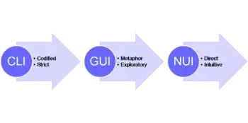 In 2006, Christian Moore established an open research community with the goal to expand discussion and development related to NUI technologies.[5] In a 2008 conference presentation "Predicting the Past," August de los Reyes, a Principal User Experience Director of Surface Computing at Microsoft described the NUI as the next evolutionary phase following the shift from the CLI to the GUI.[6] Of course, this too is an over-simplification, since NUIs necessarily include visual elements – and thus, graphical user interfaces. A more accurate description of this concept would be to describe it as a transition from WIMP to NUI.