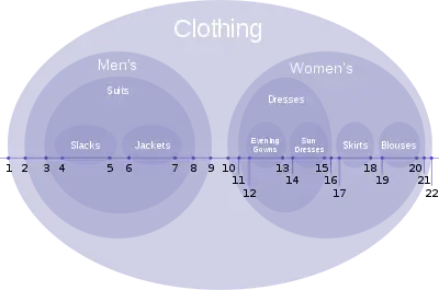 In a clothing store catalog, clothing may be categorized according to the hierarchy given on the left:
