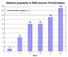 By late 2008, netbooks began to take market share away from notebooks.[13] It was more successful than earlier "mini notebooks," most likely because of lower cost and greater compatibility with mainstream laptops.