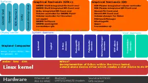 - several graphical front-ends for diverse graphical desktop environments, such as GNOME Shell, GNOME Panel, KDE Plasma Workspaces, Cinnamon, etc.