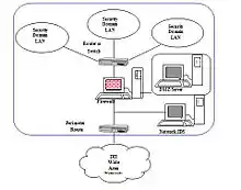 The purpose of a network enclave is to limit internal access to a portion of a network. It is necessary when the set of resources differs from those of the general network surroundings.[3][4] Typically, network enclaves are not publicly accessible. Internal accessibility is restricted through the use of internal firewalls, VLANs, network admissions control and VPNs.[5]