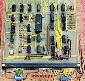 The basic 77-68 comprised an 8-inch square printed circuit board accommodating the microprocessor, Static RAM of 256 8 bit words and the bare essentials in terms of input/output and timing logic to make a working computer. The processor ran with an instruction cycle time of around 1.25 microseconds with most instructions executing in 3 to 7 microseconds.