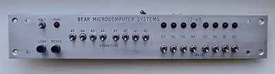 The 77-68 was programmed in its most basic form with toggle switches and LEDs. With the microprocessor's operation suspended in "HALT" mode, memory words could be accessed and their contents observed in binary. The word could then be modified directly using an additional 8 binary toggle switches to specify the data required. Once a complete program had been "toggled in" using this method, the "HALT" condition could be removed using another switch and the microprocessor would look for an address at which to start executing the program in the last two words of the address space.
