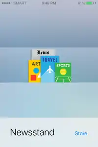 Newsstand was a visual shelf accessible directly on the iOS home screen, similar in style to iBooks. It emulated a newsagent's shop, with virtual shelves that held and presented each newspaper and magazine that had been downloaded. The Newsstand icon updated with images of the latest front covers, and displayed a notification indicator for new editions.[1][2]