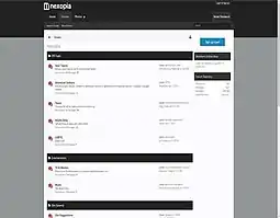 The forums are the main social aspect of the website. Nexopia 'Plus' subscribers can create their own forums, which can be open or available only to only invited members. In early 2016, the website changed to online forums.[15] The forum uses software from XenForo,[16] replacing WordPress.[17]
