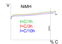 Another option is to monitor the change of voltage with respect to time and stop when this becomes zero, but this risks premature cutoffs.[24] With this method, a much higher charging rate can be used than with a trickle charge, up to 1 C. At this charge rate, Panasonic recommends to terminate charging when the voltage drops 5–10 mV per cell from the peak voltage.[23] Since this method measures the voltage across the battery, a constant-current (rather than a constant-voltage) charging circuit is used.