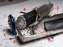 - Outer metal casing (also negative terminal)