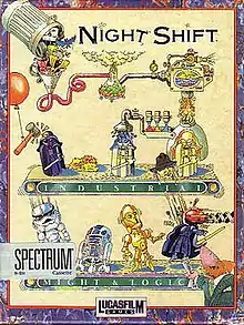 Night Shift is a video game developed by Attention to Detail and published in 1990 by Lucasfilm Games. It is an action game where the hero is a worker in a factory owned by Industrial Might and Logic (a parody of Industrial Light & Magic). The player's character ensures that the factory is working properly as it cranks out Star Wars action figures, including those of stormtroopers and Darth Vader. The object of the game is to always ensure the factory is working properly, and to move into increasingly better homes.