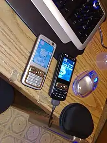 The Nokia N73 is a mobile phone announced by Nokia on 2006 as part of the Nseries[1] and started shipping on 15 July. The N73 succeeded the N70 and packed in numerous multimedia features. It features a 3.2 megapixel autofocus camera, a front camera, a then-large 2.4-inch display, and stereo speakers,[2] all in a relatively slim and pocketable size and form.[3] It runs on Symbian v9.1 (S60 3rd Edition). An improved, music-focused version called N73 Music Edition was released in 2007.