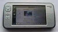 The Nokia N800 Internet tablet is a wireless Internet appliance from Nokia, originally announced at the Las Vegas CES 2007 Summit in January 2007. N800 allows the user to browse the Internet and communicate using Wi-Fi networks or with mobile phone via Bluetooth. The N800 was developed as the successor to the Nokia 770. It includes FM and Internet radio, an RSS news reader, image viewer and a media player for audio and video files.