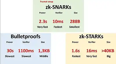 | zk-STARK[14][36] | 2019 | zk-STARK | Yes | Yes | Yes |
