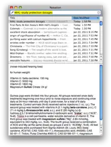 Notational Velocity is a computer program for Mac OS X used for notetaking. It allows users to create notes using solely a computer keyboard and search them using incremental find. Other features include database encryption, basic text formatting, tags and spellcheck.[1] In addition, users can synchronize notes with Simplenote and export to a variety of formats, including plain text, HTML and rich text. It has been recommended along with Simplenote as a solution for taking and syncing notes by both Wired and Lifehacker.[1][2]