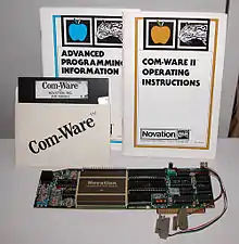 BYTE criticized Novation, stating that "the company's literature should be very explicit" about the modem's inability to communicate at 1200 baud with Bell 212 modems without the expansion card, but concluded that "Apple users shopping for a modem would be wise to consider this system very carefully".[1] Despite the Apple-CAT II's popularity, its early years were faced with incompatibility with most telecommunications programs, as its native API is considered proprietary by today's standards. To increase compatibility without re-coding these programs, Novation released a firmware upgrade kit (an EPROM package) allowing the modem to emulate the Hayes Micromodem II, including the MMII's IN#x control codes. At the Apple-CAT II's peak, compatibility with its native API increased, and MMII emulation became less of a necessity.