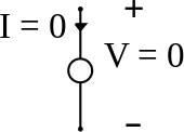 In electronics, a nullator is a theoretical linear, time-invariant one-port defined as having zero current and voltage across its terminals. Nullators are strange in the sense that they simultaneously have properties of both a short (zero voltage) and an open circuit (zero current). They are neither current nor voltage sources, yet both at the same time.[1]
